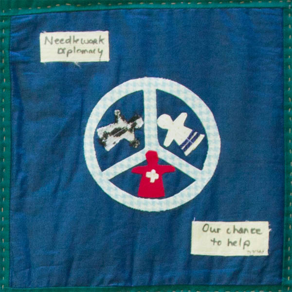 Needlework Diplomacy...Our Chance to Help: What can I do? It's only a little square of fabric, compared to such a big problem. But each of us, Jew and Arab and Christian, pick up a needle, the challenge to express our desires for peace. Maybe one of us will inspire one of you to find your own way towards peace.